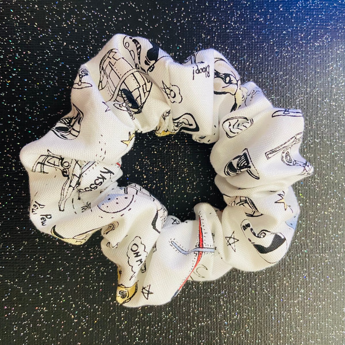 -Star Wars doodles on a white scrunchie